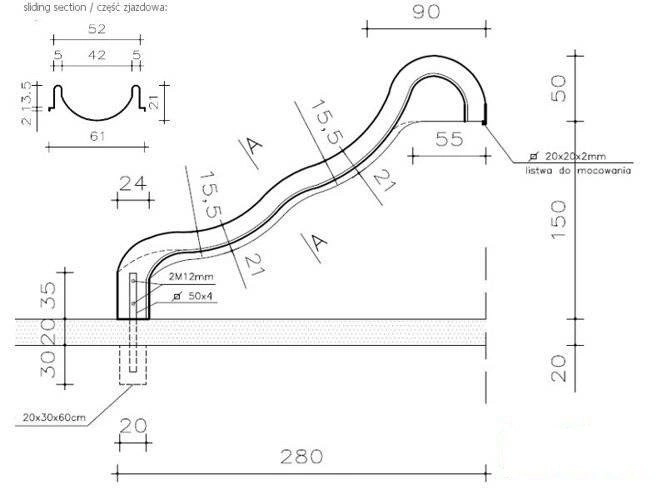 Zjeżdżalnia na publiczny plac zabaw 3,20 m