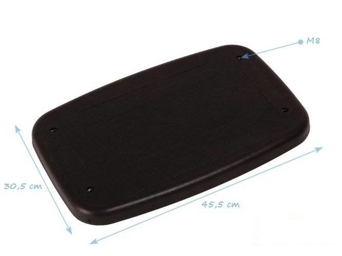 - Gumowe siedzisko z metalowym wkładem, o wymiarach 450x300x 30mm. Siedzisko spełnia normy bezpieczeństwa stawiane produktom przeznaczonym na publiczne place zabaw - jest odporne na wandalizm.