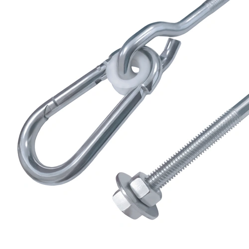 Do zawieszenia huśtawek, drabinek oraz innych akcesoriów potrzebujesz solidnego i niezawodnego łącznika montażowego. Zawiesie typ A z karabińczykiem to idealny wybór. Jego uniwersalna budowa oraz niezwykle funkcjonalne zakończenia powodują, że znajduje on zastosowanie przy montażu niemal wszystkich huśtawek, drabinek, lin oraz innych akcesoriów. Aby zastosować zawiesie typ A wystarczy przewiercić belkę na wylot i umieścić tam zawiesie wraz z nakrętką i karabińczykiem. Nie zastanawiaj się - wybierz najbardziej uniwersalne rozwiązanie. Zawiesie typ A przeznaczony jest na przydomowy plac zabaw.