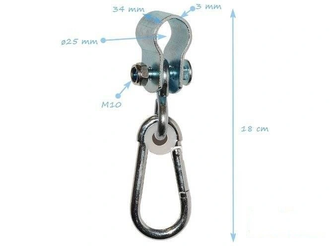 - Do zawieszenia huśtawek, drabinek oraz innych akcesoriów potrzebujesz solidnego i niezawodnego łącznika. Obejma metalowa Ø25 mm znajduje zastosowanie przy montażu większości huśtawek, drabinek, lin oraz innych akcesoriów.