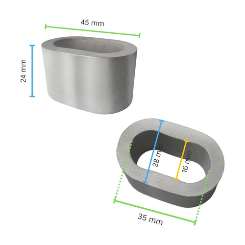 - Aluminiowy pierścień zaciskowy owalny do liny zbrojonej Ø16 mm typ I. Nasze produkty są zabezpieczone przed działaniem warunków atmosferycznych.