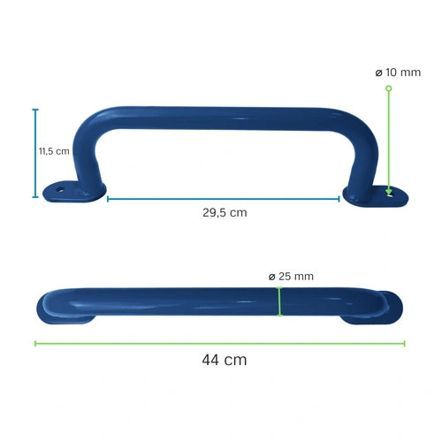 • Uchwyt metalowy dostępny w czterech kolorach. Uchwyty mają zastosowanie w konstrukcjach na placach zabaw dla dzieci, ułatwiają wchodzenie po drabinkach i tym samym, w dużym stopniu zwiększając bezpieczeństwo.