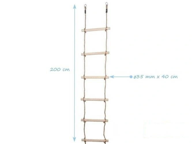 - Drabinka sznurowa sześciostopniowa. Urządzenie łączące dobrą zabawę z rozwojem fizycznym użytkownika. Drabinki do wspinaczki posiadają możliwość zastosowania zarówno na zewnątrz jak i wewnątrz pomieszczeń.