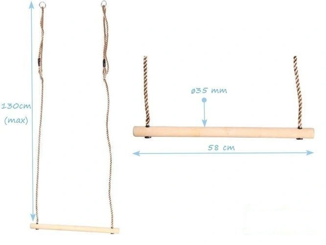 • Niezwykle oryginalny i zachwycający drewniany trapez zapewni wyśmienitą zabawę każdemu dziecku. Jego funkcjonalność umożliwia tradycyjne huśtanie się, ale również podciąganie, zwisanie oraz inne ćwiczenia doskonalące sprawność fizyczną.